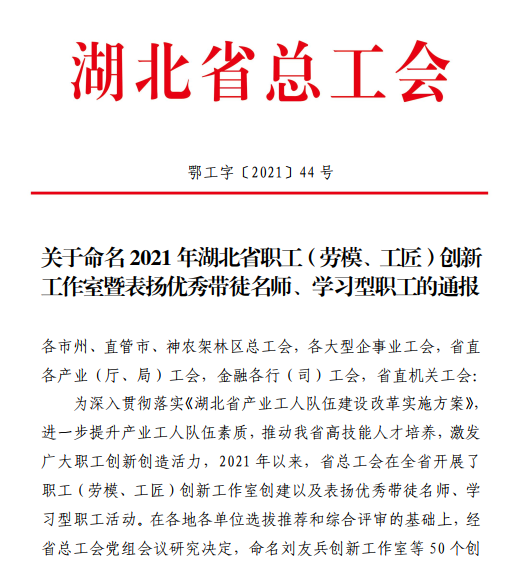 近日,襄陽市總工會印發(fā)通報,對全市職工(勞模、工匠)創(chuàng)新工作室、產(chǎn)業(yè)工人培訓基地暨優(yōu)秀帶徒名師、學習型職工進行通報表彰。公司精沖事業(yè)部趙林昌同志被表彰為“2021年襄陽市優(yōu)秀帶徒名師”,成為襄陽市獲此殊榮的30名優(yōu)秀代表之一。