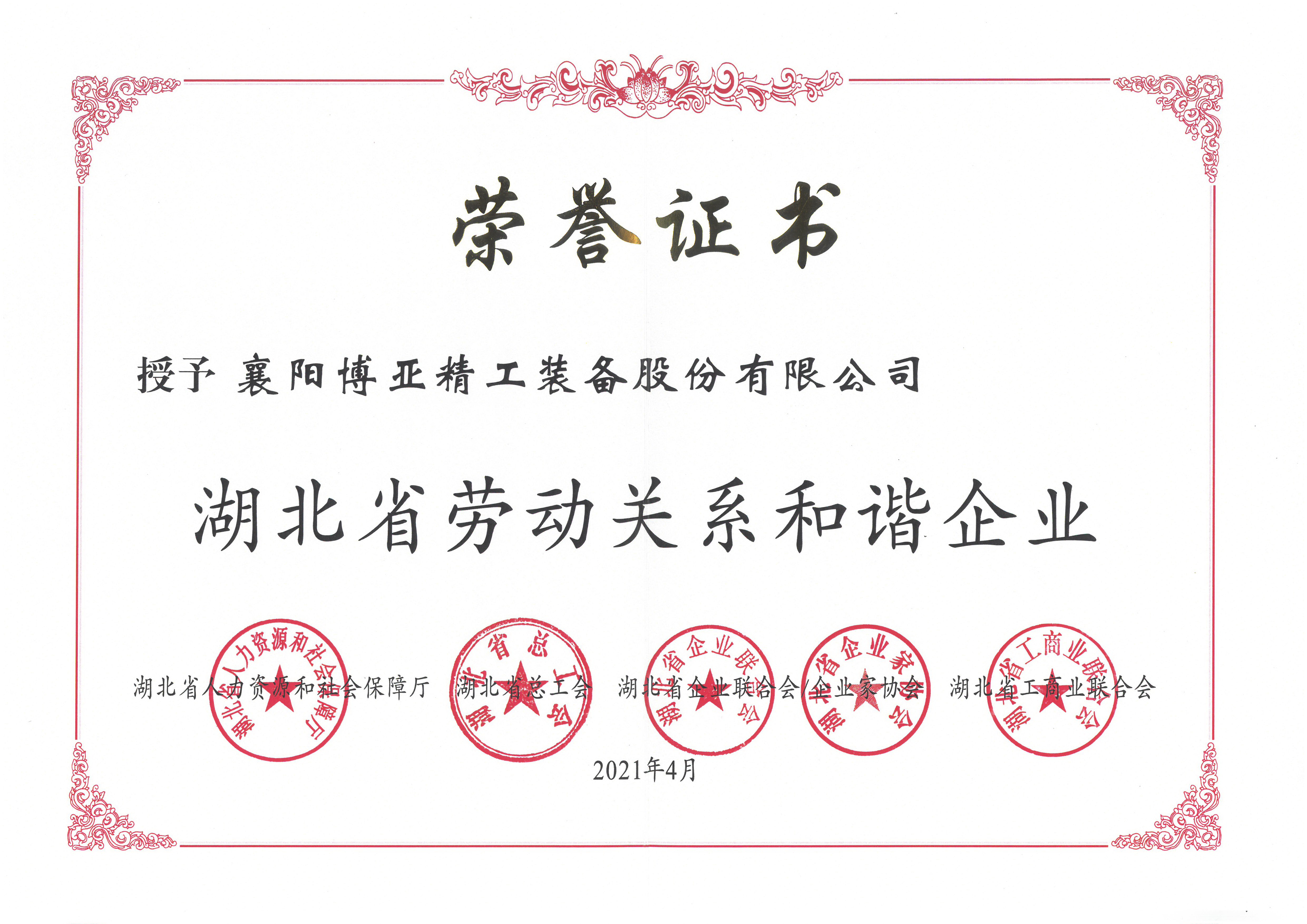 湖北省勞動(dòng)關(guān)系和諧企業(yè)